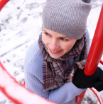 Счастливая и с улыбающимся котом вместо медвежонка.